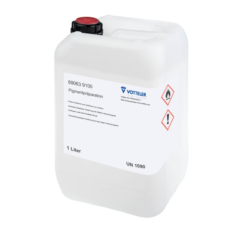 Lösemittelhaltige Pigmentpräparationen zum Abtönen und korrigieren von PURIDUR®-Beizen und Patinierlacken oder zum lasierend Einfärben von farblosen VOTTELER- NC-, PURIDUR®-, und SHE-Lacken. Zugabemenge in Lacke max. 5 %, Zugabemenge in Beizen max. 25 %