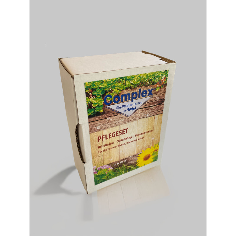 Pflegeset mit allen Produkten und Utensilien für die natürliche Pflege von allen mit COMPLEX-Produkten behandelten Oberflächen.